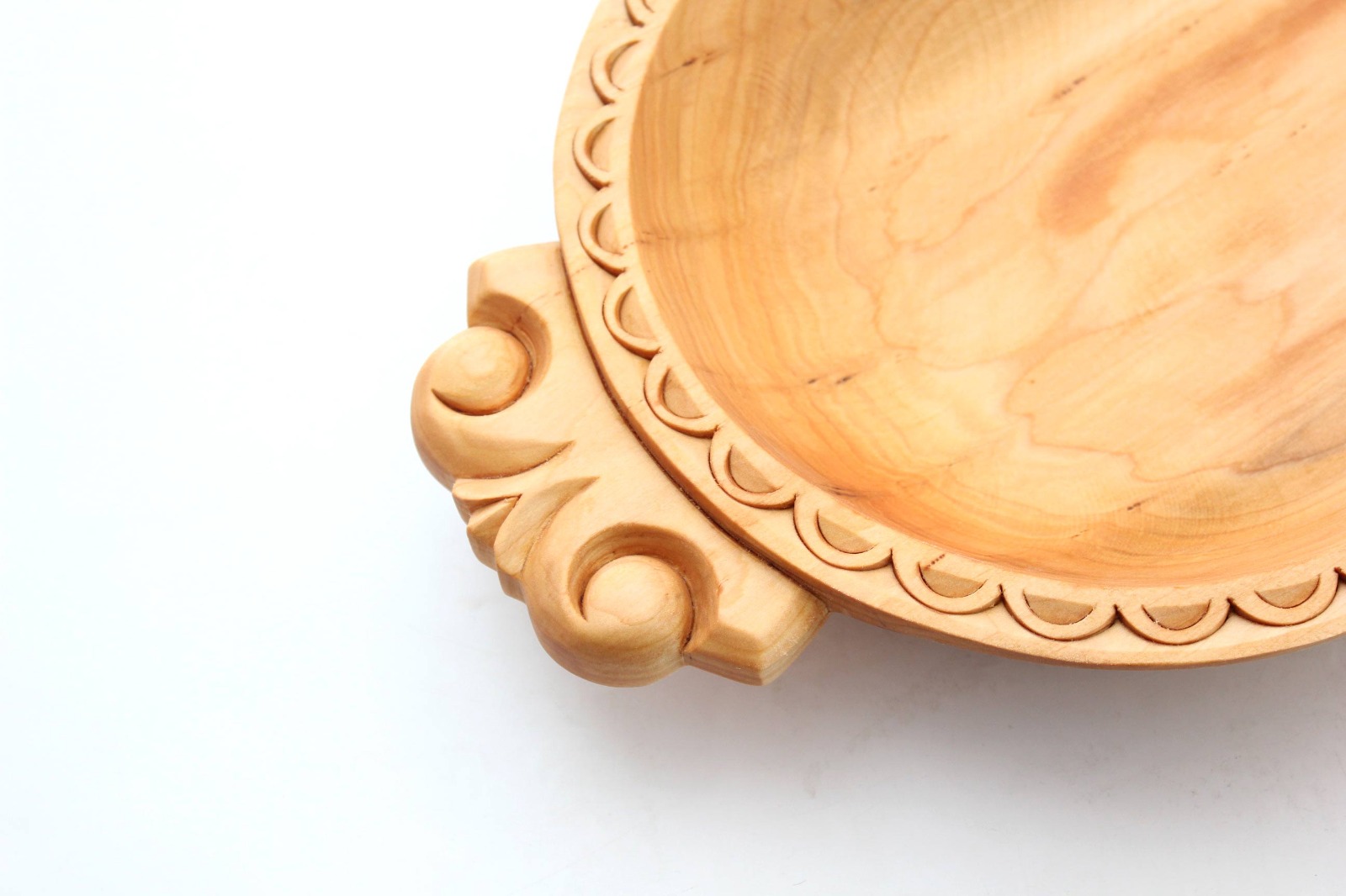 На бортах астау, вдоль всего блюда, имеется мелкая резьба в виде полукруга. Астау изготавливается вручную из цельной доски. |