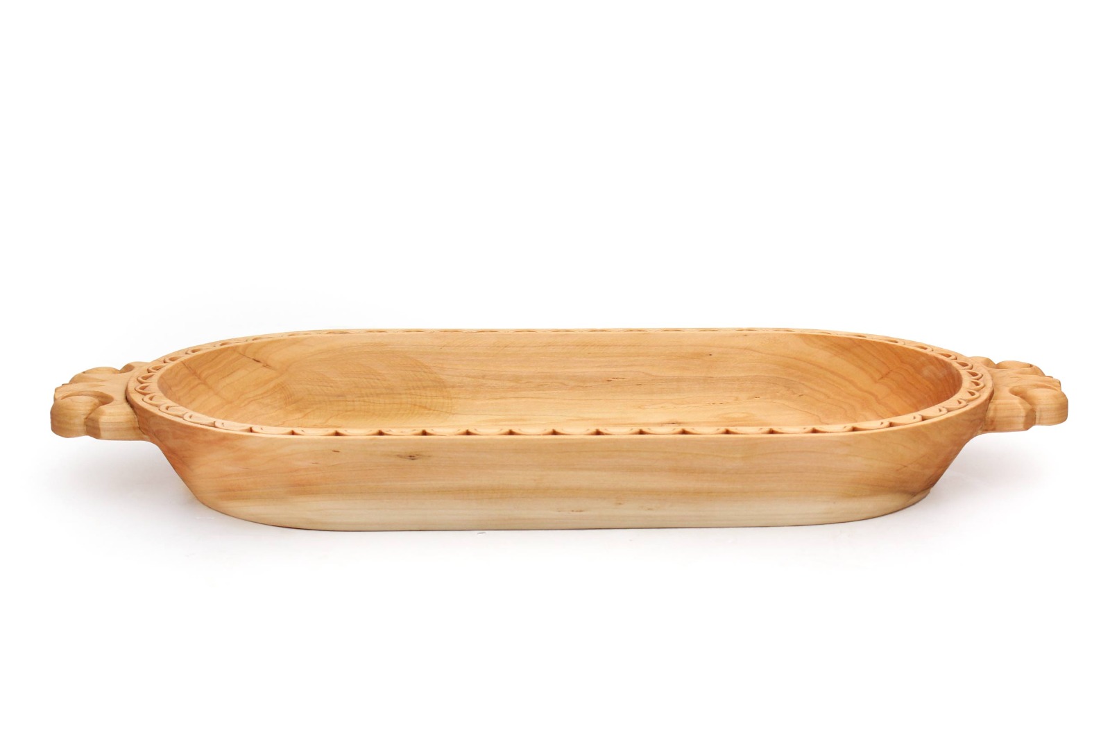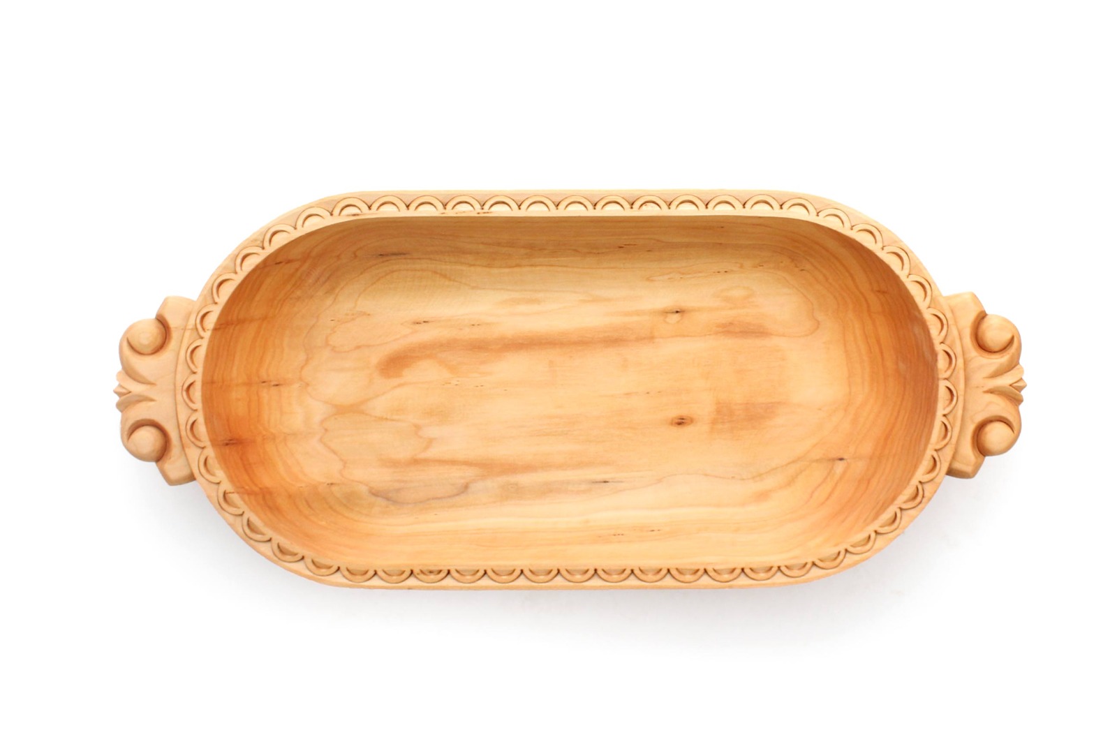 | Внешние характеристики, описание. | Овальное блюдо с цельными, удобными для переноса ручками, вырезанные в орнаментальном стиле.