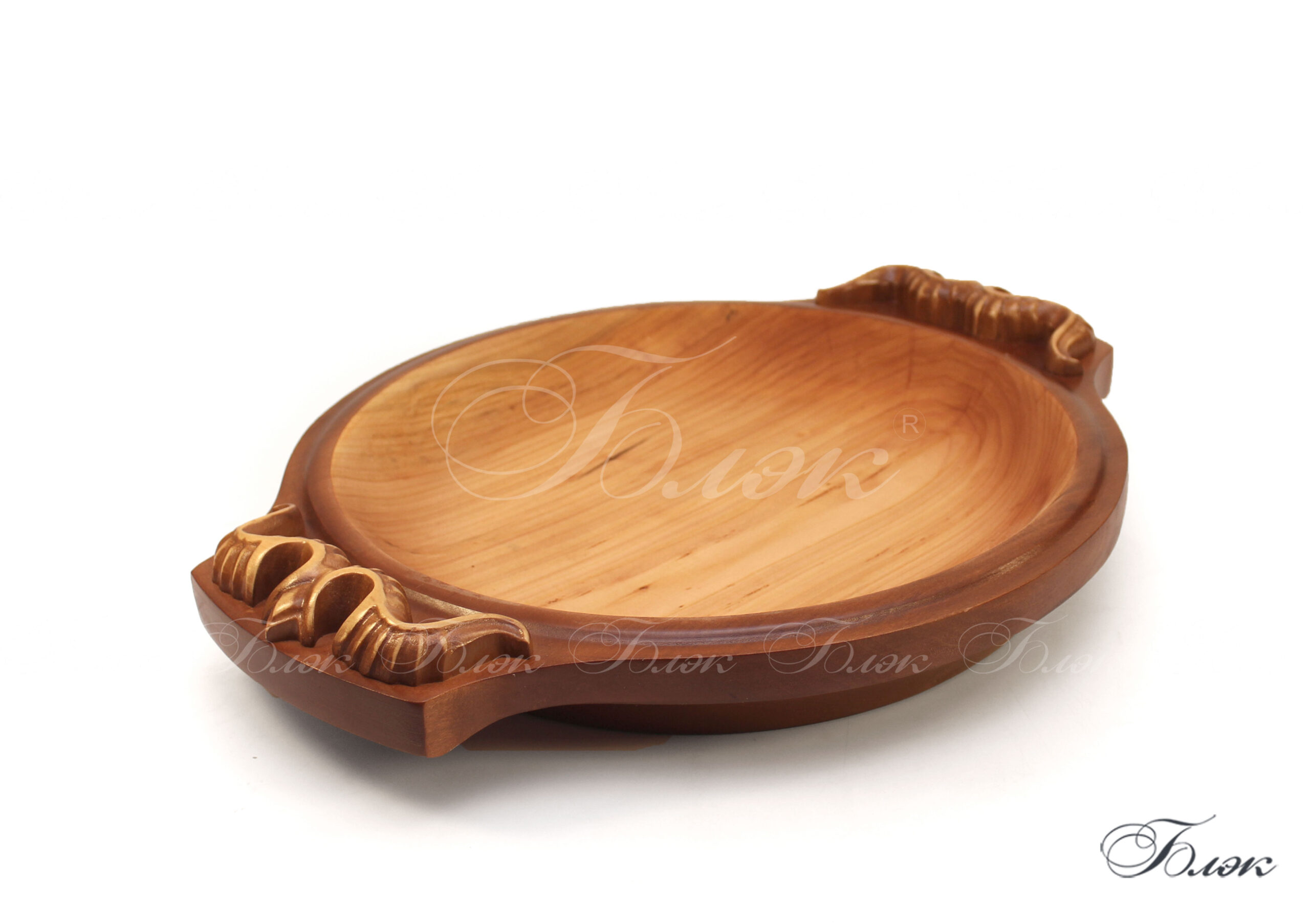 | Покрытие изделия | Блюдо с внешней стороны тонировано и покрыто четырёхслойным защитным лаком, подчёркивающим резные элементы изделия. Внутренняя часть обработана горячим растительным маслом. |
