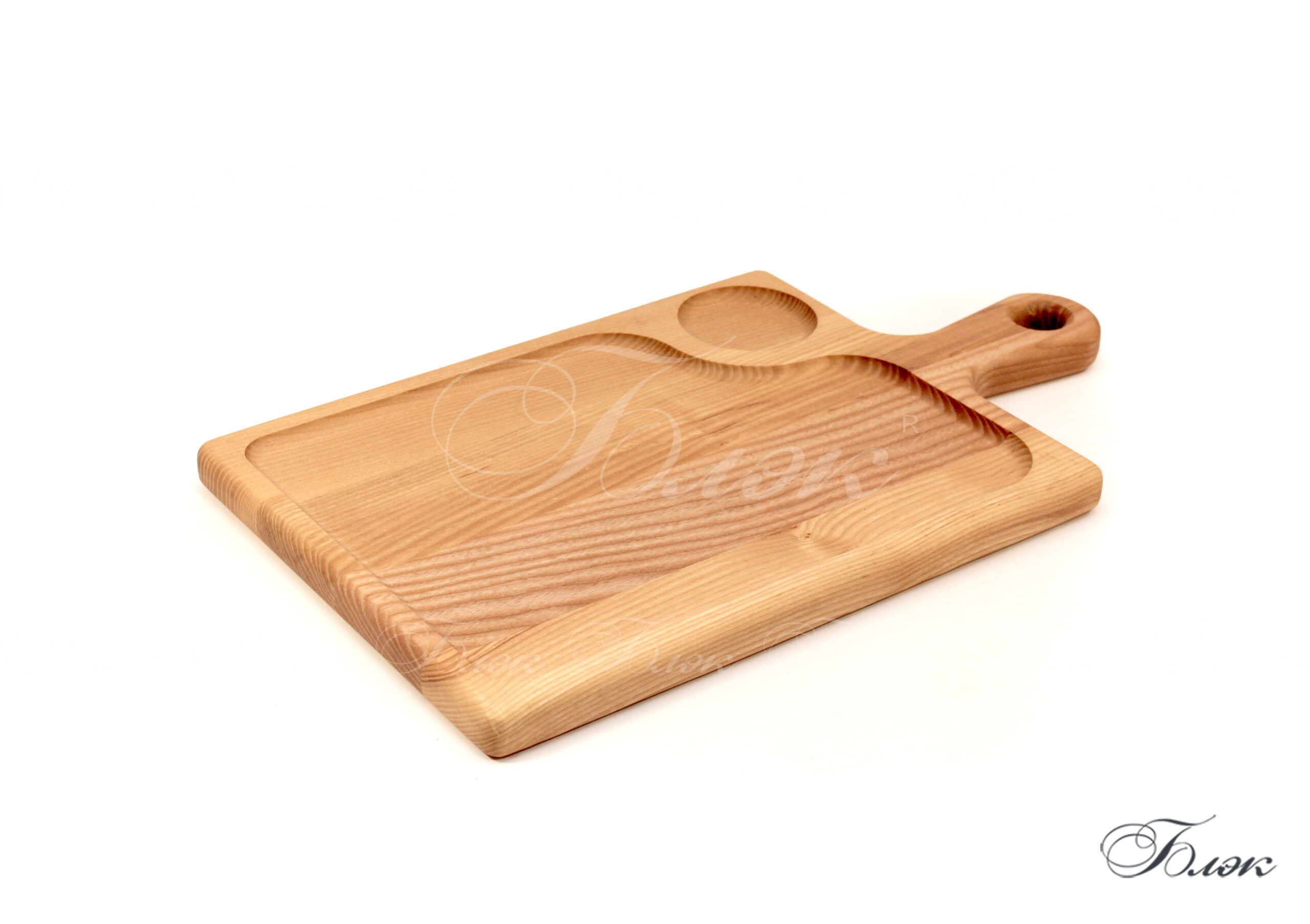 | Внешние характеристики, описание. | Доска разделочная для кухни из цельного дерева ясеня с ручкой. Имеет покрытие пищевым маслом, безопасным для здоровья человека. Прочная древесина Ясеня не впитывает влагу и запахи и не портится от горячей воды. На доске есть круглое отверстие для соуса. С обратной стороны может использоваться как разделочная доска. Очень функциональное и практичное изделие, удобно в использовании, пропитано пищевым маслом, не впитывает воду и запахи, без каких-либо красящих веществ, износостойкая и при правильной эксплуатации прослужит долгие годы.