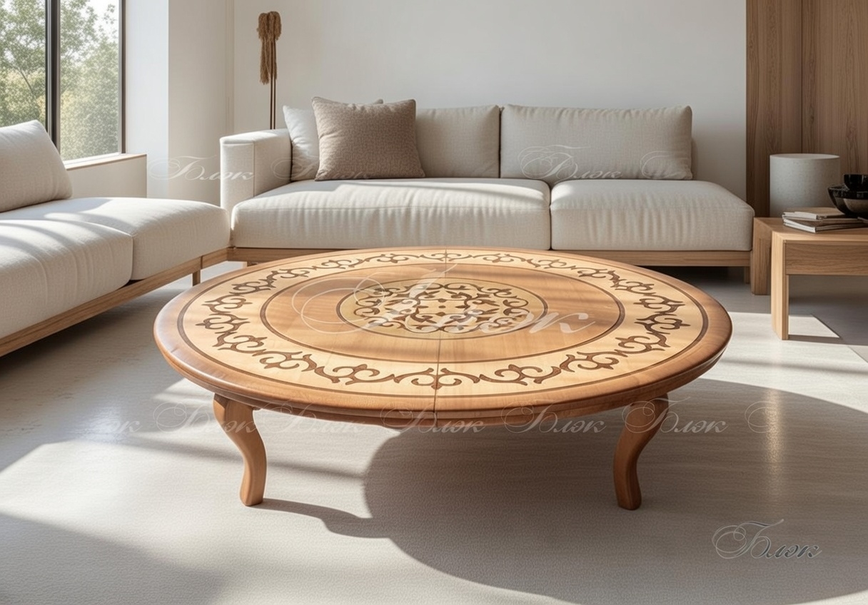| Кому будет интересен. Особенности изделия. | Стол будет удобен в любой семье. Он подойдёт для оформления помещений в национальном стиле, для украшения юрт или традиционных мероприятий и торжеств.