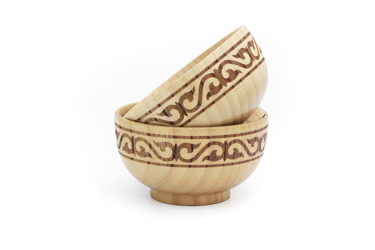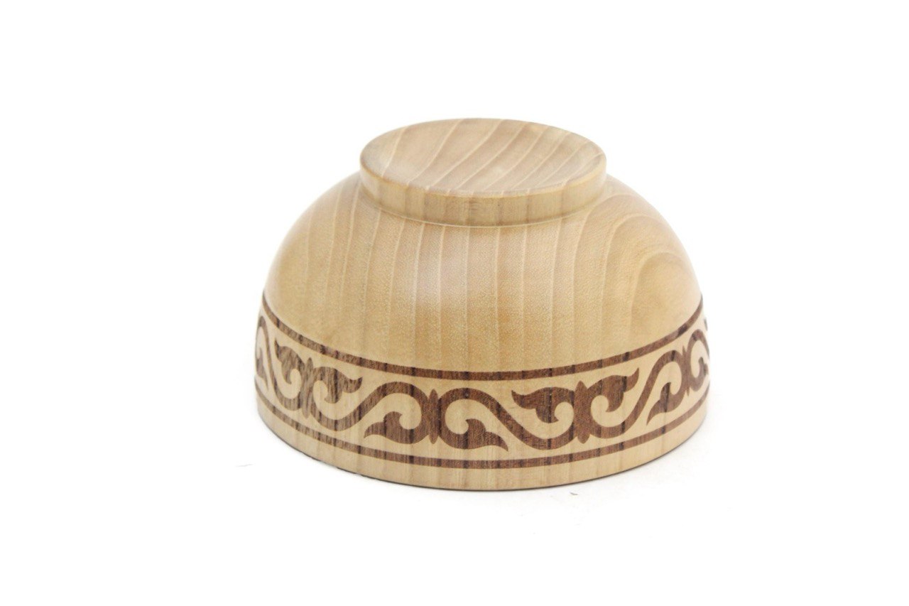 | Форма, размер и материал | Имеет круглую форму традиционной пиалы, диаметром 12/13 см, высотой 6,5-7 см. Вес — 120-140 грамм. Данный вид вытачивается из цельного куска акации. |