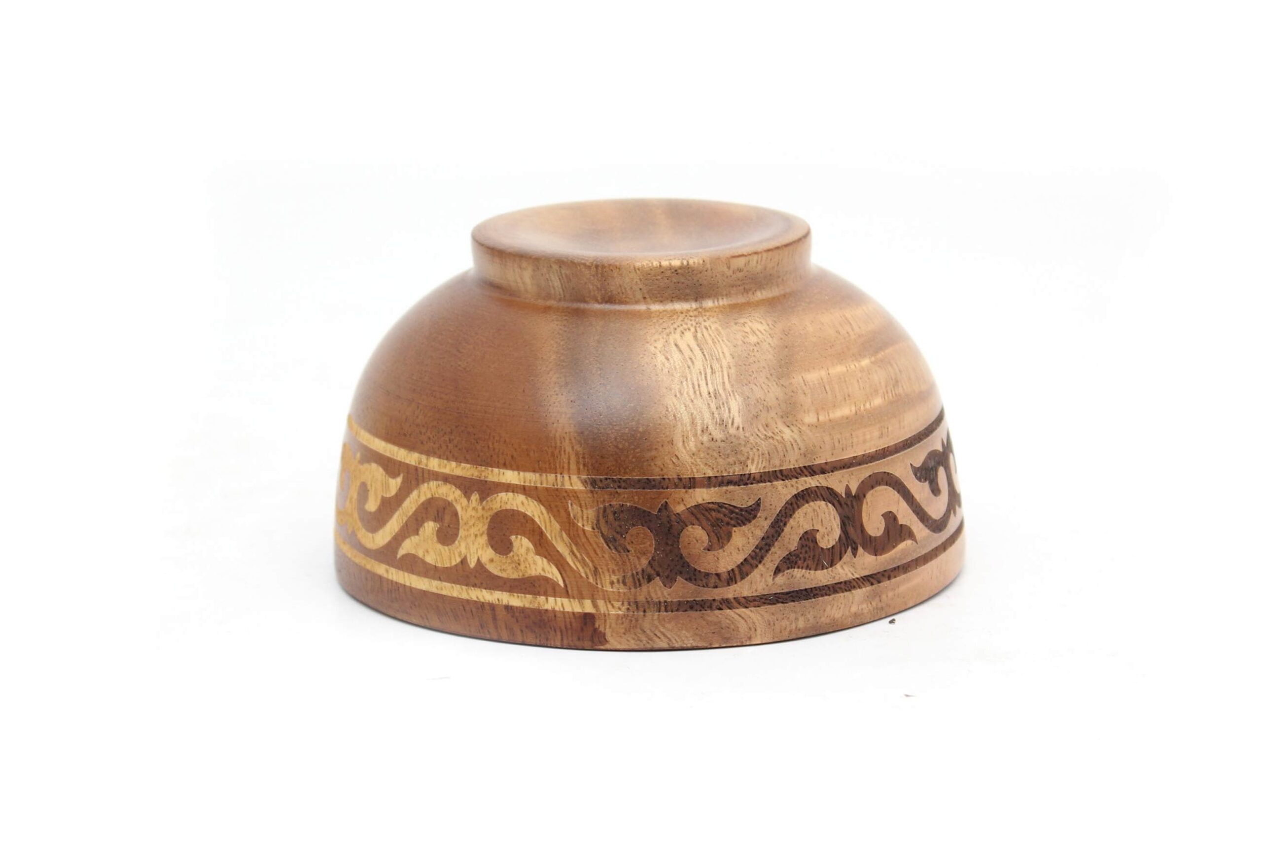 | Форма, размер и материал | Имеет круглую форму традиционной пиалы, диаметром 12/13 см, высотой 6,5-7 см. Вес — 120-140 грамм. Данный вид вытачивается из цельного куска акации. |