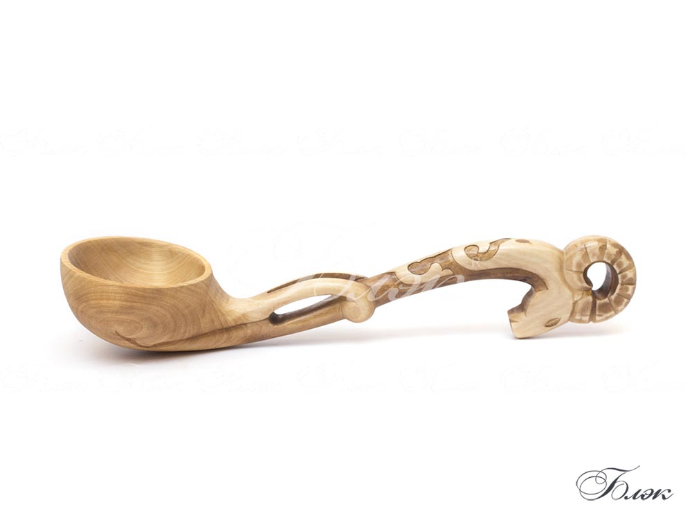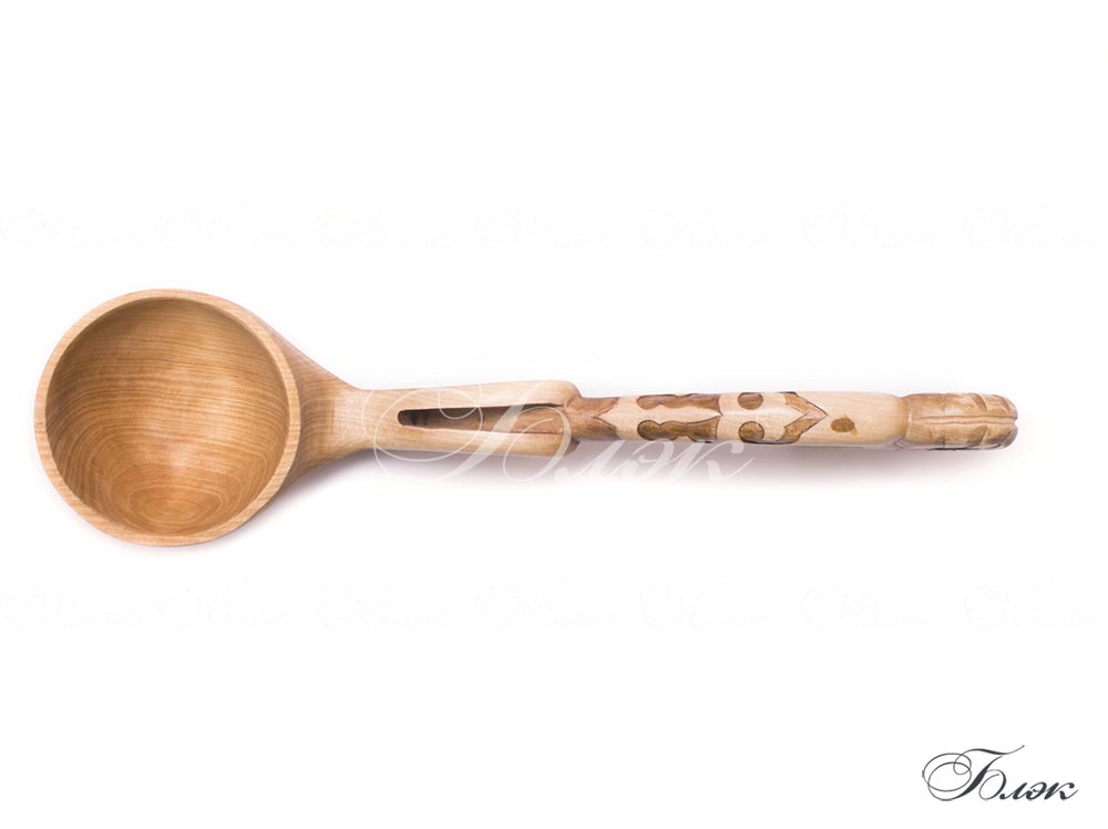 | Форма, размер и материал | Изготавливается только из цельного куска берёзы, имеет классическую слегка изогнутую форму поварёшки, с длинной ручкой. |
