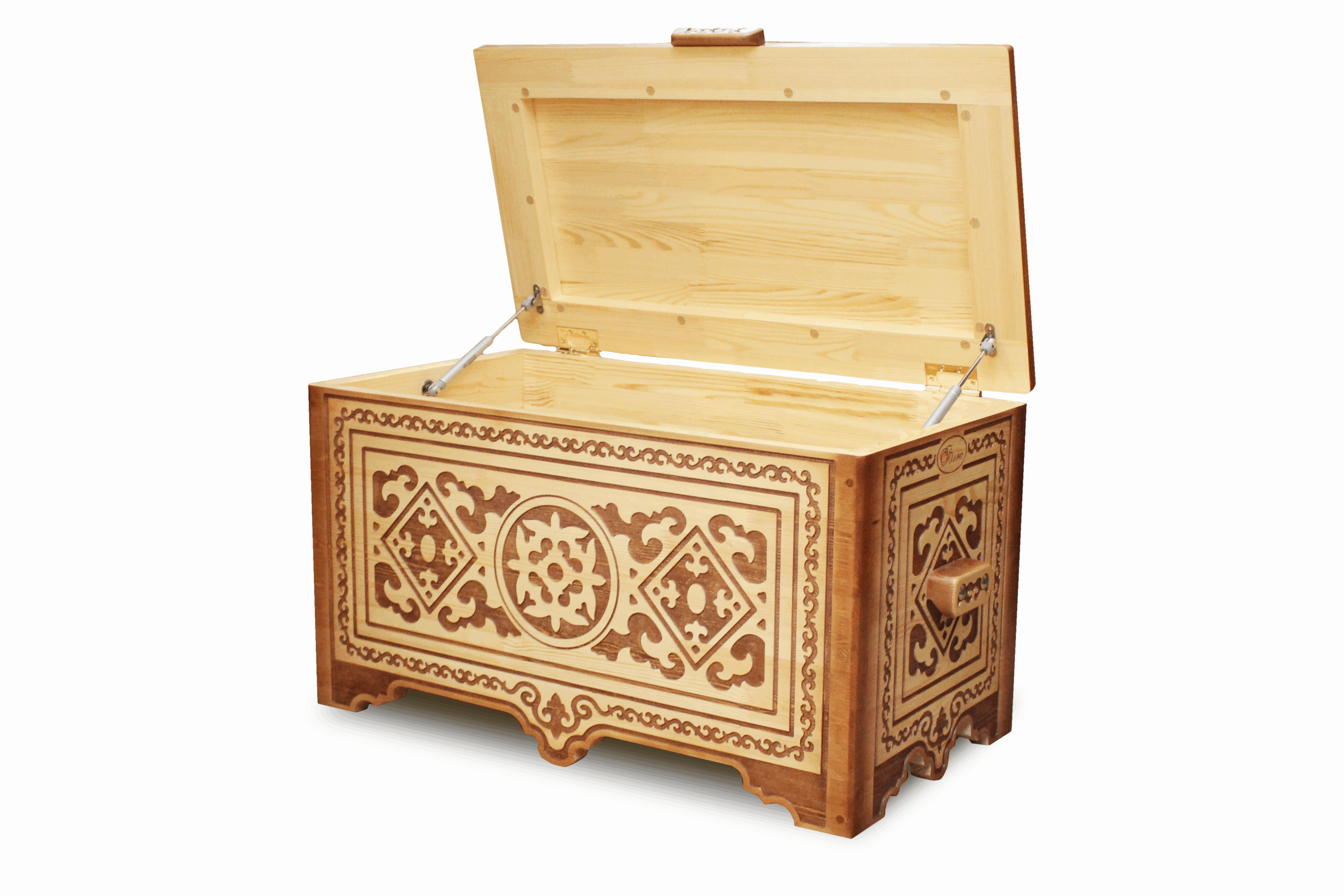 | Творческий замысел | Сундук — это не только часть культуры казахского народа, но и необходимый элемент мебели, в котором наши предки хранили не только постельное белье, и домашние вещи, но и продукты впрок. В маленьких сундучках хранили сладости и чай, или драгоценности. Украшенный ручной резьбой, сундук всегда был неотъемлемой частью девичьего приданого. Когда устраивали проводы невесты, то ее одежду, украшения и постельные принадлежности складывали в сундук, и в дом будущего супруга она отправлялась со своим приданым. |