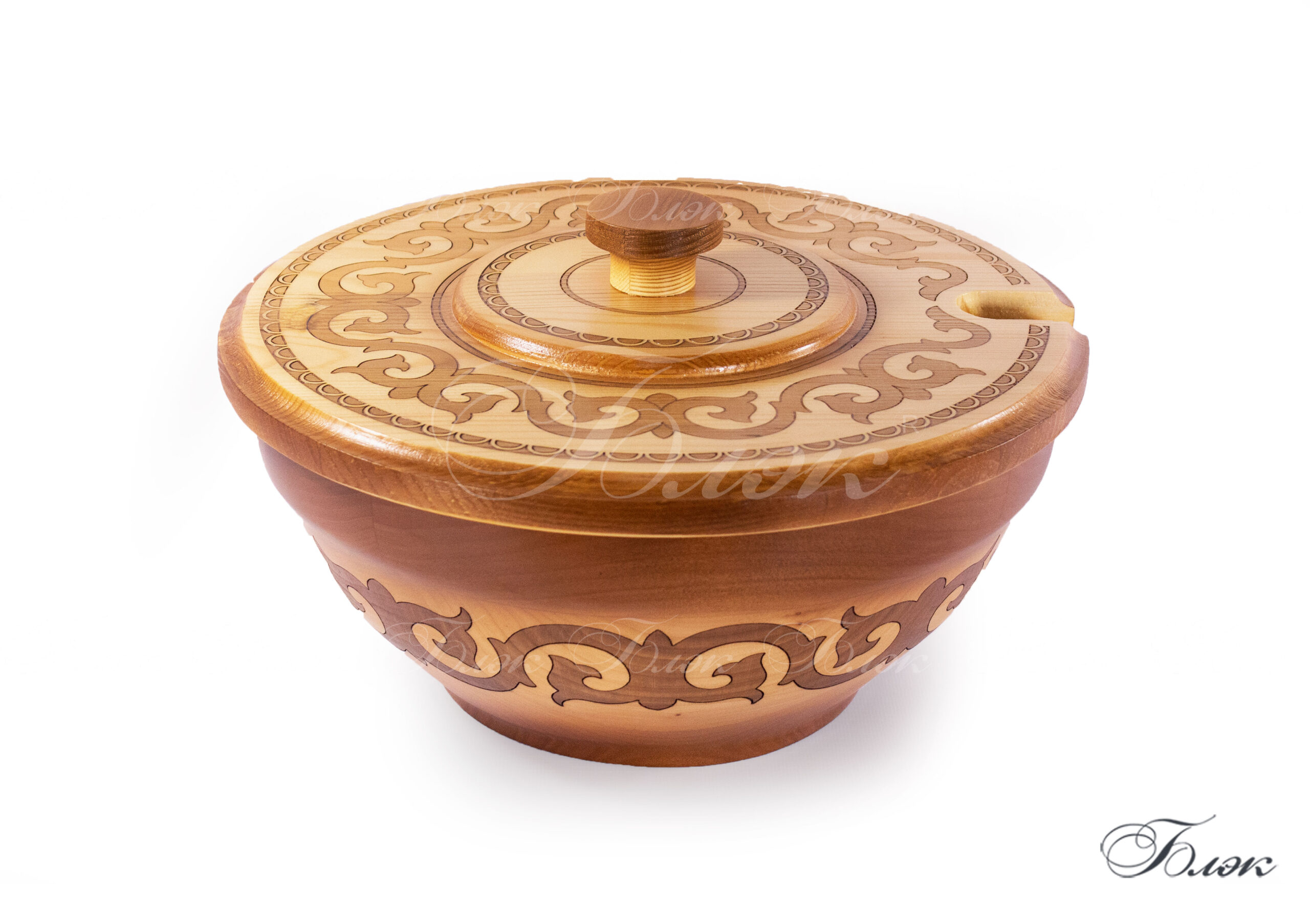| Внешние характеристики, описание. | На внешней стороне тегеш украшен национальным резным орнаментом. Внутрь вставлена металлическая съёмная чаша из нержавеющей стали высокого качества, сделанная по заказу фабрики «Блэк». Имеется сертификат качества. Данная чаша предотвращает соприкосновение жидкости и дерева и позволяет наливать напитки, не боясь растрескивания дерева. |