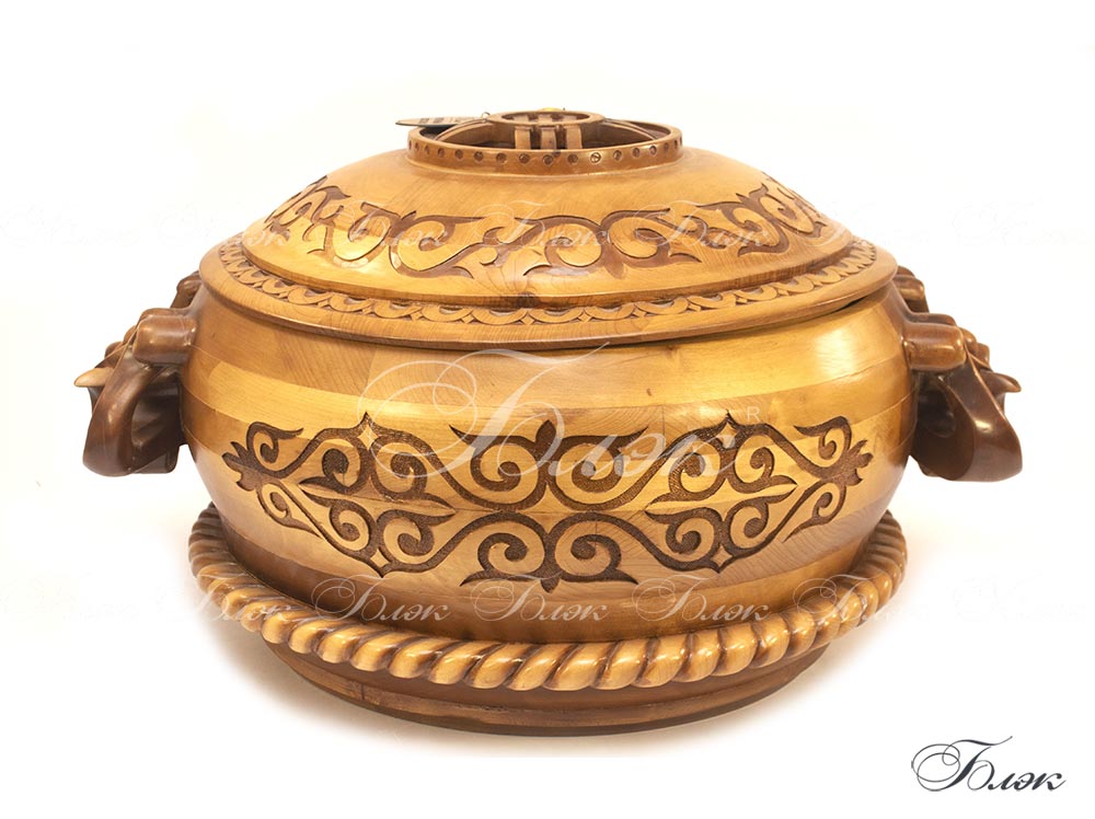 | Кому будет интересен, особенности изделия. | Тегеш подходит для ресторанного использования, для угощения гостей во время праздников и банкетов. Также может выполнять декоративную функцию в качестве оформления юрты или помещения в казахском стиле. Солидный подарок уважаемому человеку. Для полного комплекта, добавьте к тегешу ожау для кумыса и набор резных кесешек, из коллекции посуды. |